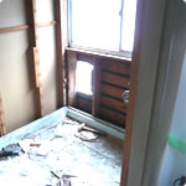 ②そして、タイルを含め、壁部分を撤去いたします。