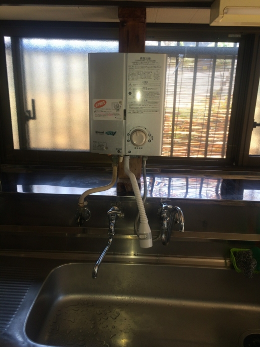 お台所の瞬間湯沸かし器をエコキュートに繋げました。